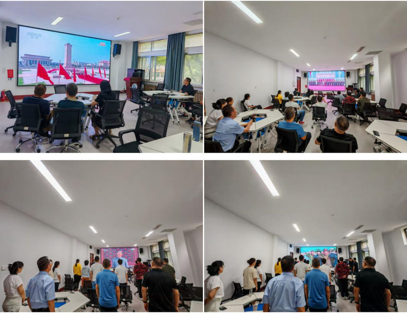 中心教职工齐聚一堂,凝神观看纪念大会直播。当雄壮国歌响起,全体教职工自发起立,高歌国歌。主席发表重要讲话时,大家认真聆听、学习领会,深刻感受抗战精神的时代光芒与历史厚重感。许多人眼含热泪,在追忆峥嵘岁月中凝聚起奋发前进的磅礴力量。阅兵式开始,现场气氛热烈。看到现代化人民军队的威武雄壮、国之重器的磅礴气势,教职工们激情澎湃,倍感自豪,纷纷为祖国强大的国防力量和繁荣发展由衷点赞。